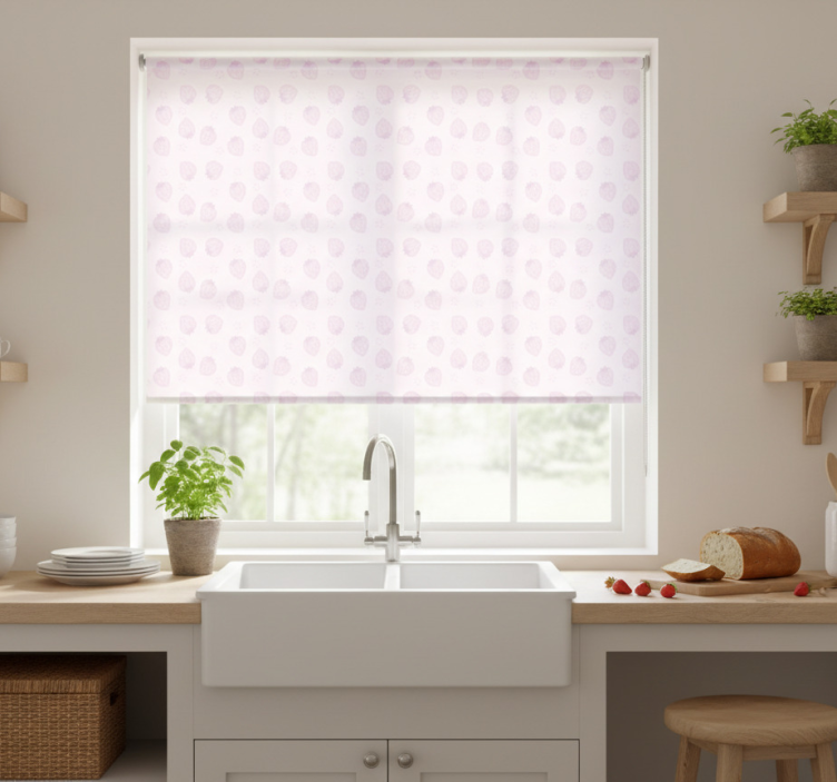 Rollo fenster küche mit erdbeermuster auf pink