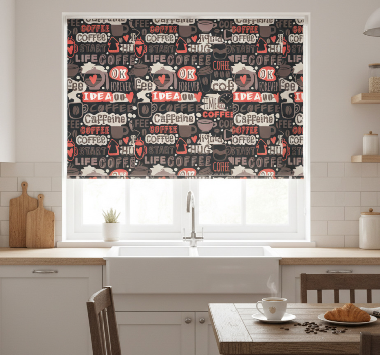 Rollo fenster küche mit typografischem kaffeemuster