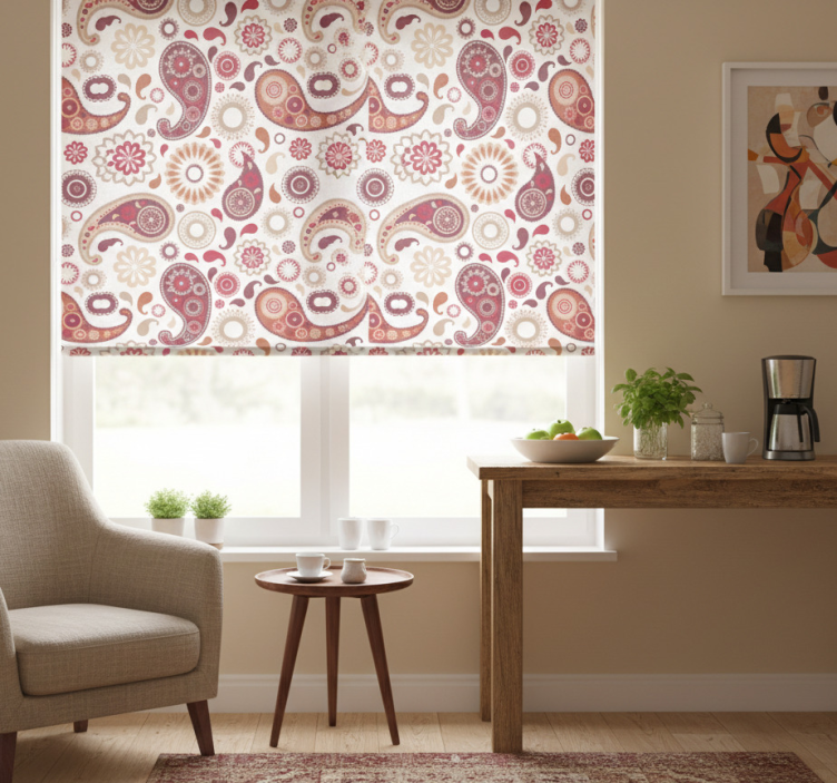 Rollo fenster küche mit weißem paisleymuster