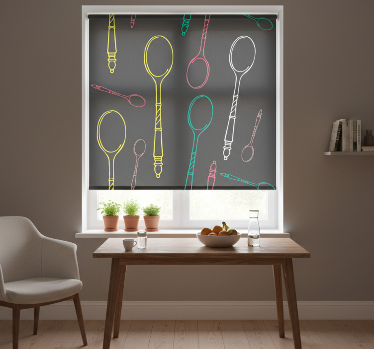 Die Installation des Rollo Fenster Küche Rollo Fenster Küche Neon Utensilien Skizze Musters ist kinderleicht und erfolgt in nur zwei Klicks. Einfach anbringen, justieren und schon ist Ihr neues Rollo bereit, um Ihre Küche zu verschönern!
