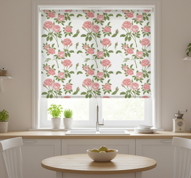 Rollo fenster küche rosenblütenmuster