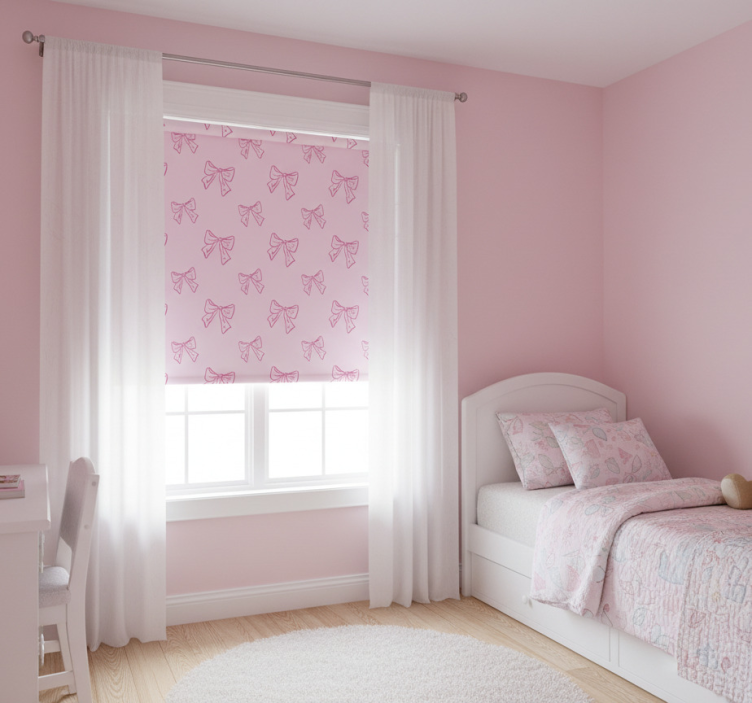 Rollo fenster romantisch mit pinkem schleifenmuster