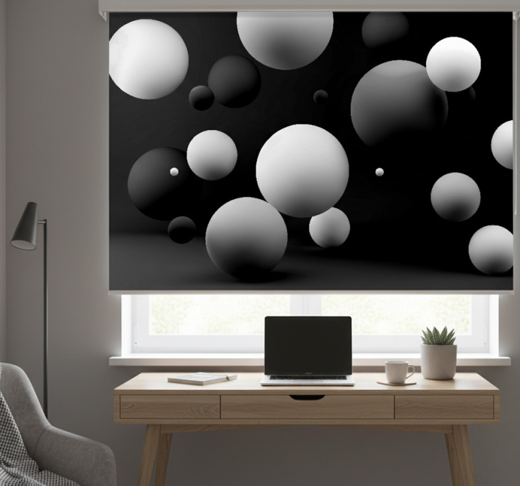 Referenz: E8739Entdecken Sie das Rollo Fenster Schwarz weiße Kugeln auf schwarzem Hintergrund, das mit seinem markanten Design und der eleganten Kombination aus schwarzen und weißen Kugeln auf einem tiefschwarzen Hintergrund besticht. Dieses Rollo bringt nicht nur Farbe in Ihre Räume, sondern fügt sich auch perfekt in moderne Wohnkonzepte ein. Mit einem klaren Muster und einer ansprechenden Ästhetik hebt es jeden Raum hervor und verleiht ihm eine stilvolle Note.