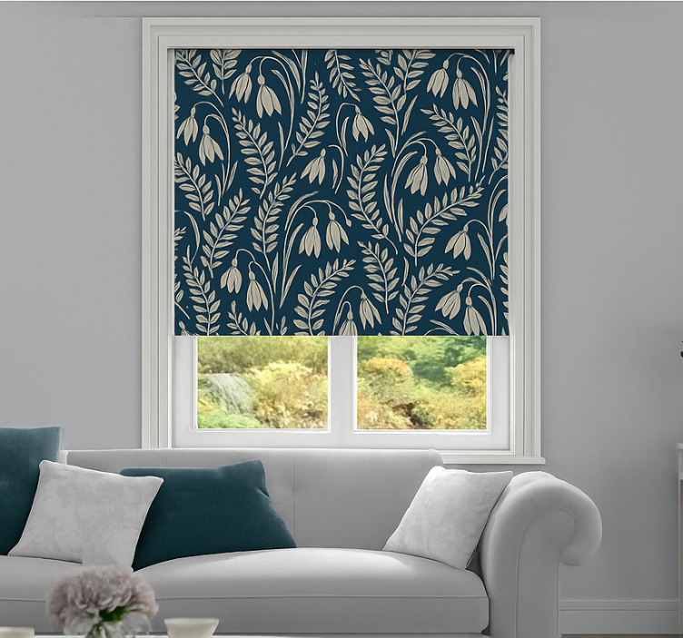 Rollo fenster skandinavisch navy beige schneeglöckchen