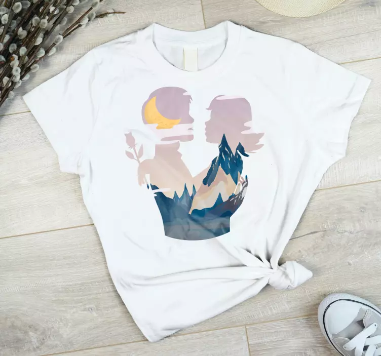 Entdecken Sie das bezaubernde Design unserer Mutter und Tochter T Shirts Silhouette der Verbundenheit, das eine harmonische Verbindung zwischen Mutter und Tochter darstellt. Die Nipponesische Illustration zeigt zärtliche Silhouetten, die unter einem strahlenden Mond vor majestätischen Bergen stehen. Diese Natur inspiriert zu einer liebevollen Botschaft der Familienbindung, die in jedem Detail des Shirts spürbar ist.