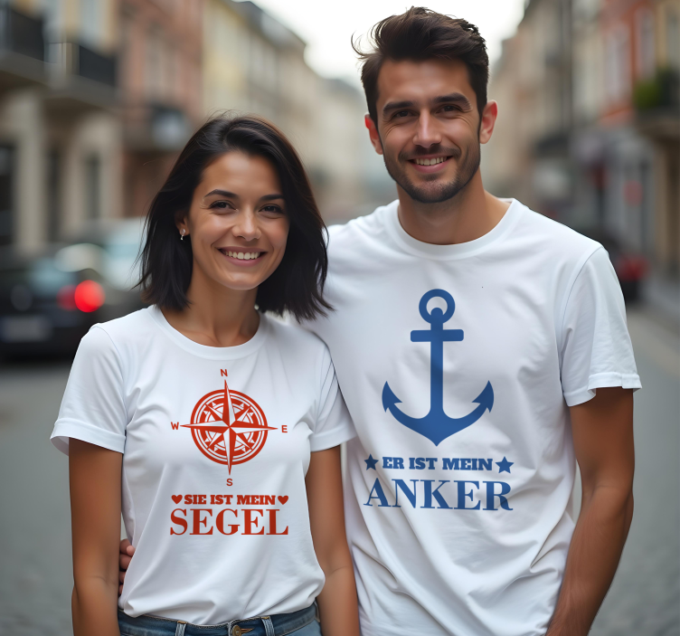 Referenz: T4010Entdecken Sie die perfekten Pärchen T-Shirts mit dem einzigartigen Design "Er ist mein Anker, sie ist mein Kompass". Diese stilvollen Shirts vereinen die Symbole eines Ankers und eines Kompasses, die für Stabilität und Orientierung in der Beziehung stehen. Tragen Sie die Botschaft von Liebe und Zusammenhalt in einem ansprechenden grafischen Stil, der sowohl modern als auch zeitlos ist.