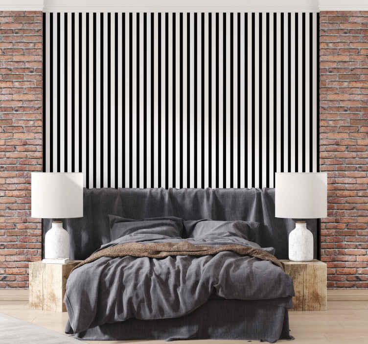 Das Design dieser Tapete vertikale Streifen vertikales streifenmuster ist modern und minimal mit einem Kontrast von Schwarz und Weiß. Die vertikalen Linien schaffen ein einzigartiges und ansprechendes Muster, das jedem Raum eine stilvolle Note verleiht. Die Tapete eignet sich perfekt für die Innendekoration und fügt einen Hauch von Eleganz hinzu.