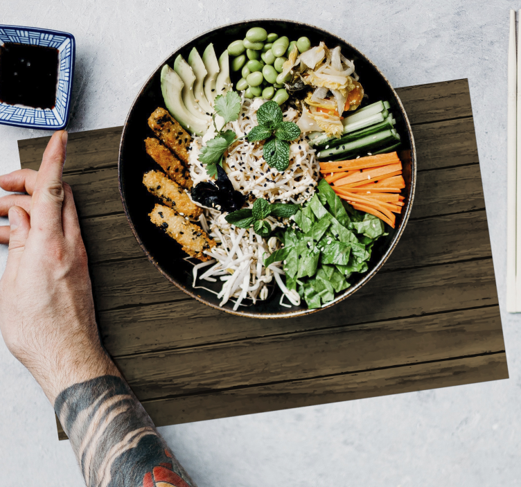 aus hochwertigem Material. Es ist einfach zu bedienen und zu warten und nicht rutschig. Mit einem einfachen Tuch und Wasser kann es gereinigt werden und behält bei Flecken ein erstaunliches Aussehen. Das Produkt schützt den Tisch vor verschüttetem Essen und Beschädigungen, während es schön aussieht. Servieren Sie Ihre Familie auf einem organisierten und wirklich hübsch aussehenden Tisch mit unseren hochwertigenPlatzsets in Holzbrett-Muster