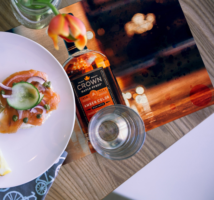 Entdecken Sie die faszinierende Welt der Tischsets originell flasche mit dunst, die mit einem einzigartigen Design beeindrucken. Die grafische Gestaltung zeigt eine stilvolle Flasche mit einem Hauch von Ahorn und Bernsteinfarbe, die an einem gemütlichen Kamin platziert ist. Die Bokeh-Effekte verleihen dem Gesamtbild eine elegante Note, während das Getränk in der Flasche anregende Gedanken an gesellige Abende weckt. Das Zusammenspiel dieser Elemente schafft eine Atmosphäre, die sowohl modern als auch einladend ist.
