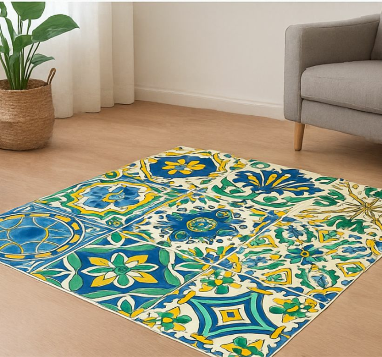 Referenz: R19667Entdecken Sie die faszinierende Welt unserer Vinyl Teppich Fliesenoptik mediterrane Fliesen, die mit ihrem einzigartigen Design und lebendigen Farben jeden Raum in ein mediterranes Paradies verwandeln. Die grafischen Muster sind inspiriert von traditionellen Fliesen und verleihen Ihrem Zuhause eine elegante und warme Atmosphäre. Dank der hochwertigen Materialien bietet dieser Teppich nicht nur ästhetische Vorteile, sondern auch Funktionalität durch Eigenschaften wie Rutschfestigkeit und Kratzfestigkeit.