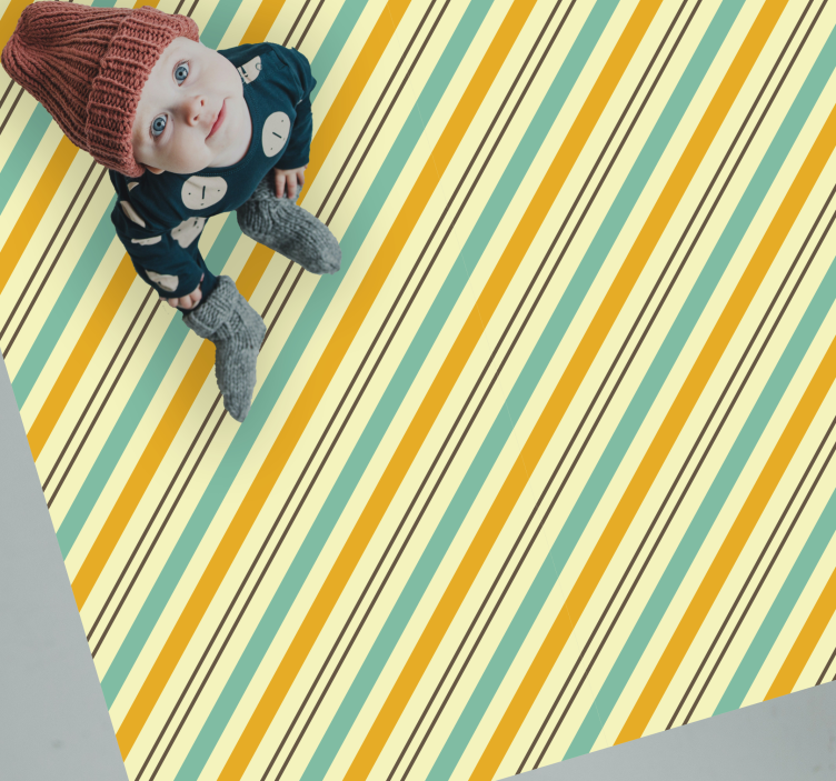 Der Vinyl Teppich gestreift lebhaftes Streifenkonzept präsentiert sich in einem dynamischen und verspielten Design, das die Räume mit gestreiften Mustern in Gelb und Blau belebt. Die diagonalen Linien und die lebendige Farbwahl schaffen eine fröhliche Atmosphäre, die sowohl modern als auch einladend wirkt. Dieser Teppich ist nicht nur ein Blickfang, sondern bringt auch eine beschwingte Leichtigkeit in Ihr Zuhause!